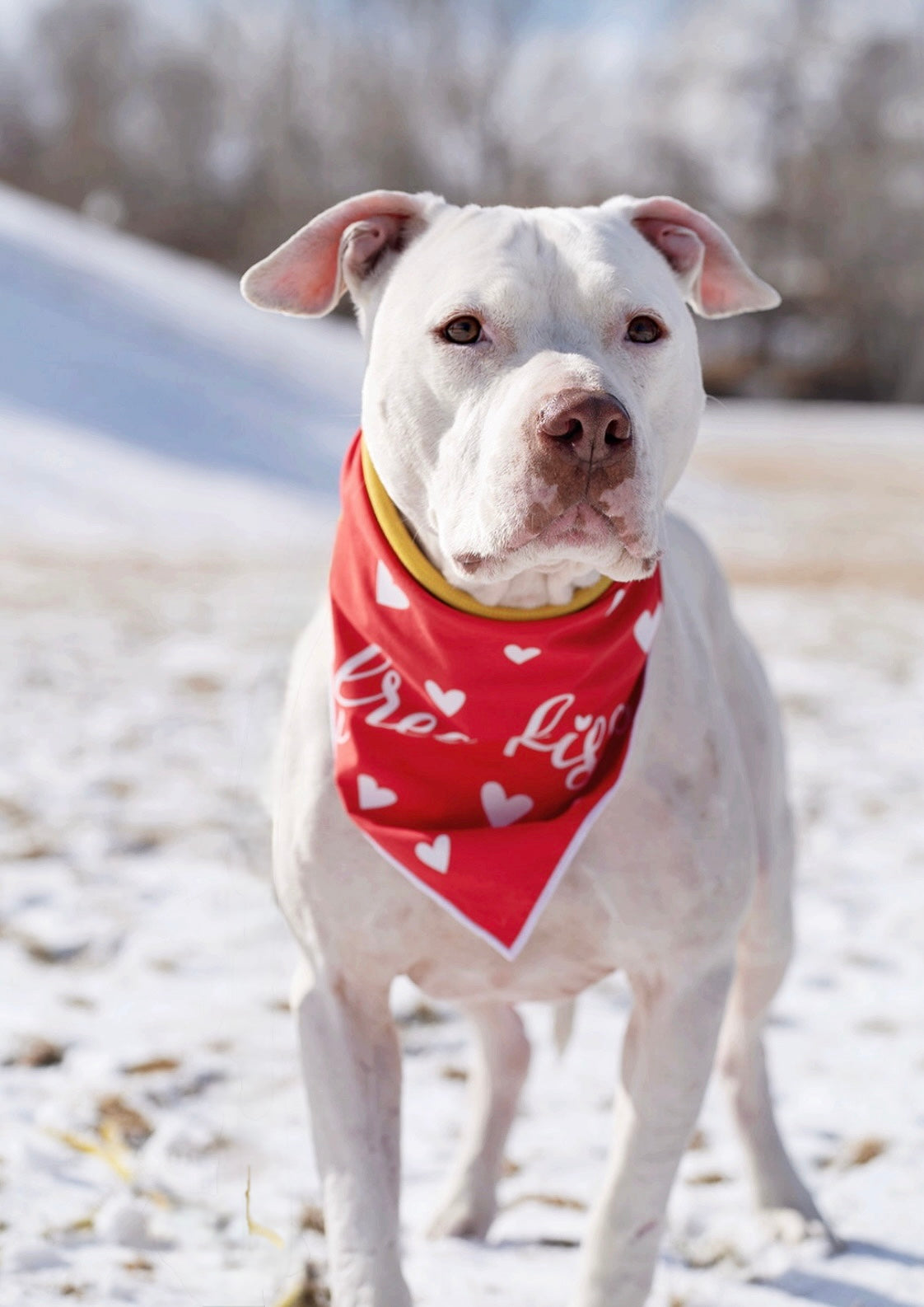 Polly is currently being fostered by Angie in Wyoming and is living with a Pittie foster brother who she is best friends with. She is seeking a loving forever home to play fetch with her and take her on tons of adventures!