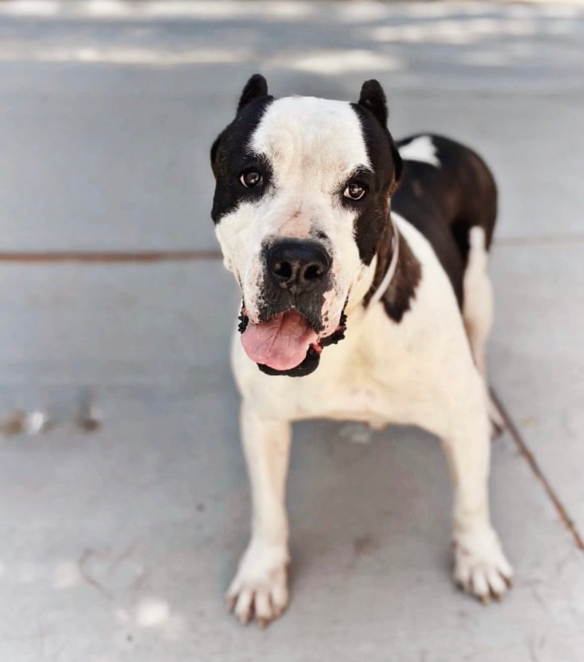 It is clear Charlie had a hard life prior to arriving at South LA shelter. She was very emaciated... incredibly underweight for her size and age: 63lbs. Her ribs and hips are visible but luckily, she was with a wonderful foster who has gotten Charlie to a healthy weight! Additionally, Charlie was a mama... which we can tell from her nipples that show she has at least had a litter or two.