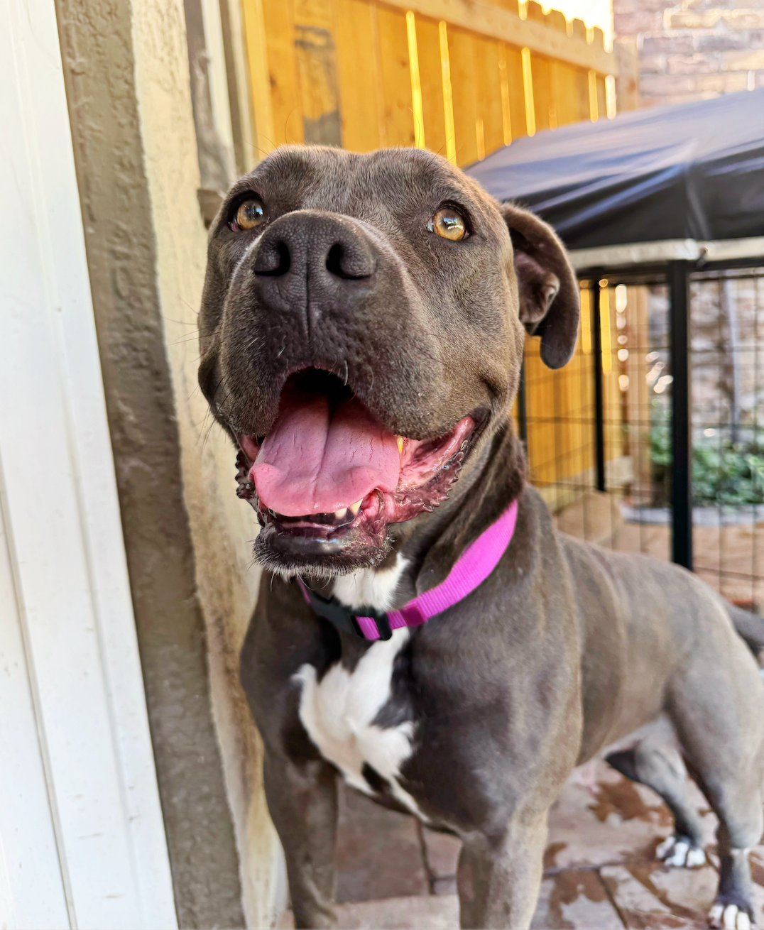 All of Sahara’s babies have been adopted but she has been with us for almost a year. Because she never had an owner, she is sensitive to space around humans and would love a family to advocate for her and give her space around strangers. She is incredibly sweet, fun and goofy but needs time to adjust and trust. Who can blame her after the life she’s had?