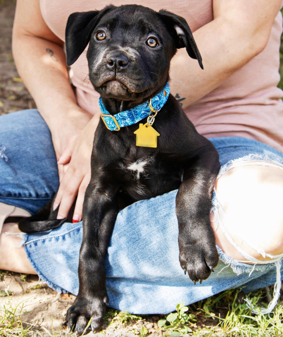 Fig is a spunky boy who’s equally as cuddly. He loves being by his human and would make an awesome companion for a family. He loves other dogs and is learning appropriate manners and basic skills like sit, stay, etc. He is more laid back than his sisters and less high energy but, he is a puppy so of course, be ready for the zoomies and puppy playtime!