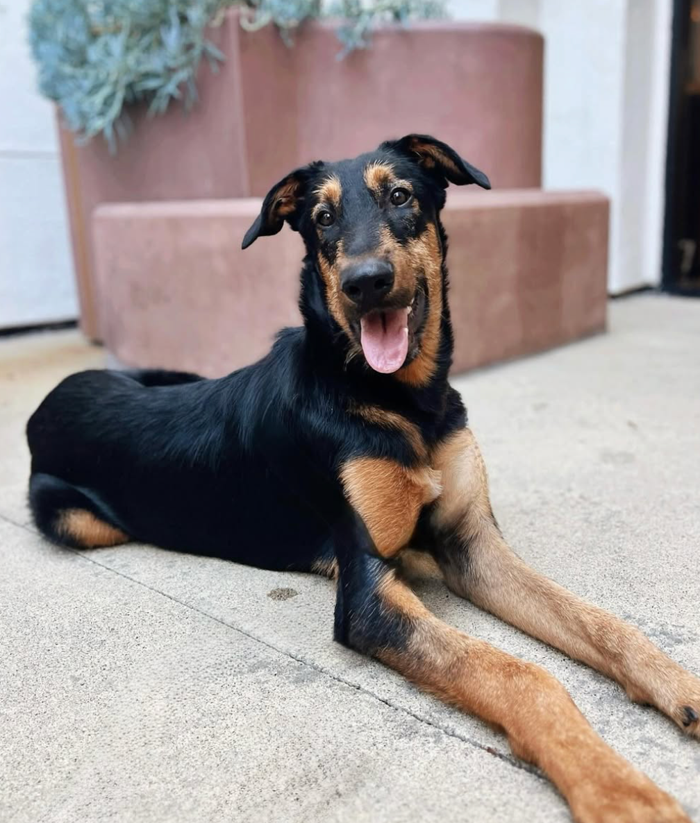 Ranger, previously Harrison from Downey, is 10 months to a year old and likely a Doberman/Shepherd mix. He currently has an injured front leg, which is likely what landed him on the euthanasia list but is on the mend after being seen by our vet!